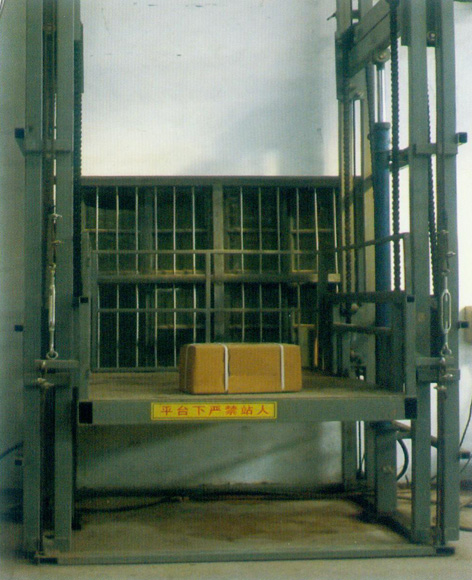 液压式升降货梯是在两层之间运输货物的一种设备,主要由两列立柱,台面和液压驱动部件等部分组成。载重可以从200kg到2000kg,台面可以做到3米×2米,高度可以做到6米,上升速度为3.5米/分钟。升降平台的上升和下降是通过安装在导轨里面的液压油缸来实现的。液压油缸是通过安装在地面旁边的液压泵站提供动力来驱动的。一般标准的电源为三相380V,单相为220V也可。控制电压为24V。在每一层都安装有控制盒及急停按钮。超行程开关安装在顶部,防止设备超过设定高度运行。防爆阀在油缸底部,防止油管爆裂,平台突然下降。如果载重超过额定载重的120%,平台将不会起升。每一层都安装有和设备互锁的门,只有当平台在那一层,那层的门才能开启,否则门是打不开的。如果有一扇门没有关好,设备是不会动作的。这样可以保障人员货物的安全。